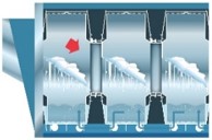 真正的上传送对每仓布草有效地加倍稀释——先从逆流中获得稀释作用,然后从转移传送中获得稀释作用。与其他类型的洗衣龙相比,在洗涤相同产量的情况下,美罗洗衣龙所需的仓数更少。