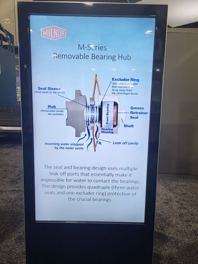 展会上,美罗(MILNOR)展出了种类广泛的工业洗涤设备——包括脉冲喷流PulseFlow®技术洗衣龙、压水机和贯穿式烘干机。同时还展示了PulseFlow®演示装置,以便于客户能够真实了解该技术的工作原理。