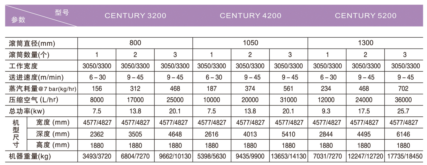 · 备有滚筒直径32寸(800毫米),42寸(1050毫米)或52寸(1300毫米)多种选择。